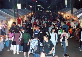 町内の商店や団体による出店と実行委員会の縁日コーナーが多数並びます。2016-08-30 update